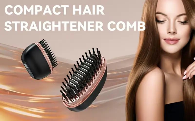 Mini Cordless Hair Straightener, Portable 2-In-1 Heated Comb and Iron, Portable and Rechargeable Travel Essential, Travel-Friendly Styling Tool, Multifunctional Hair Straightener for Travel and Home, Anti-Frizz Brush